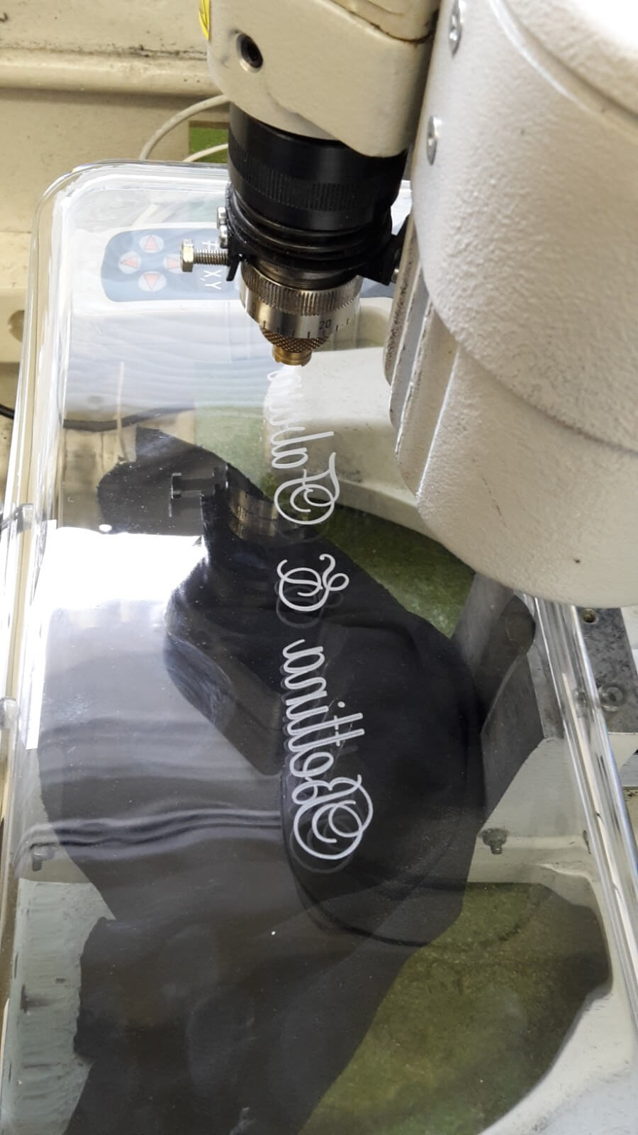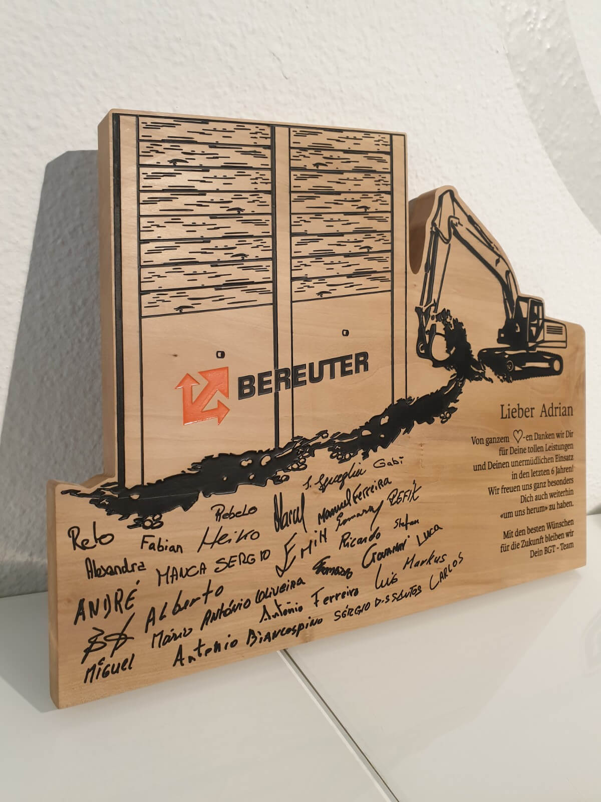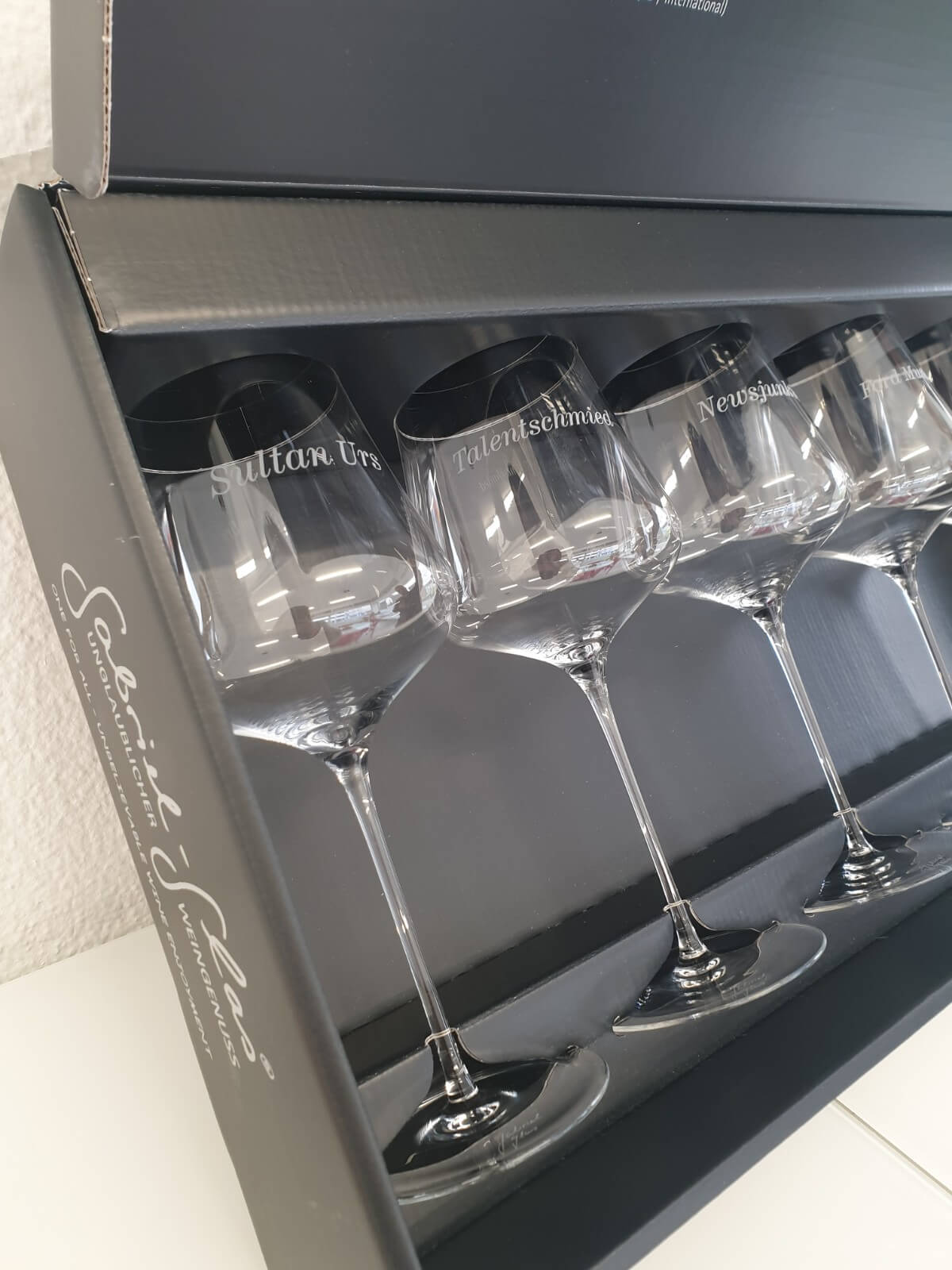 Angelieferte Objekte in verschiedensten Formen und Materialien,können mit einer persönlichen Gravur zu einem Einzelstück werden.