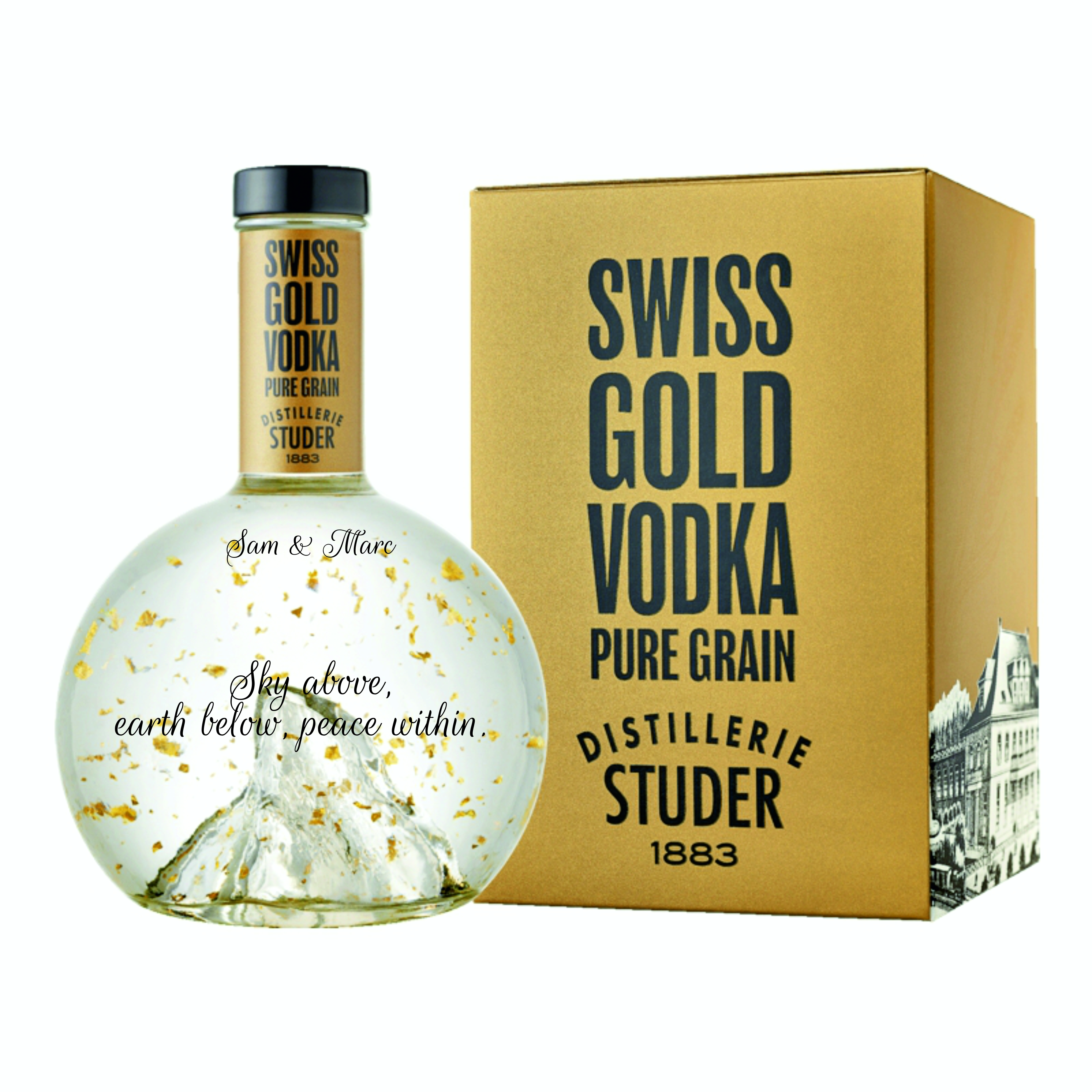 – Flasche Studer Swiss Gold VODKA mit echtem Goldflitter, 22 Karat, 70 cl