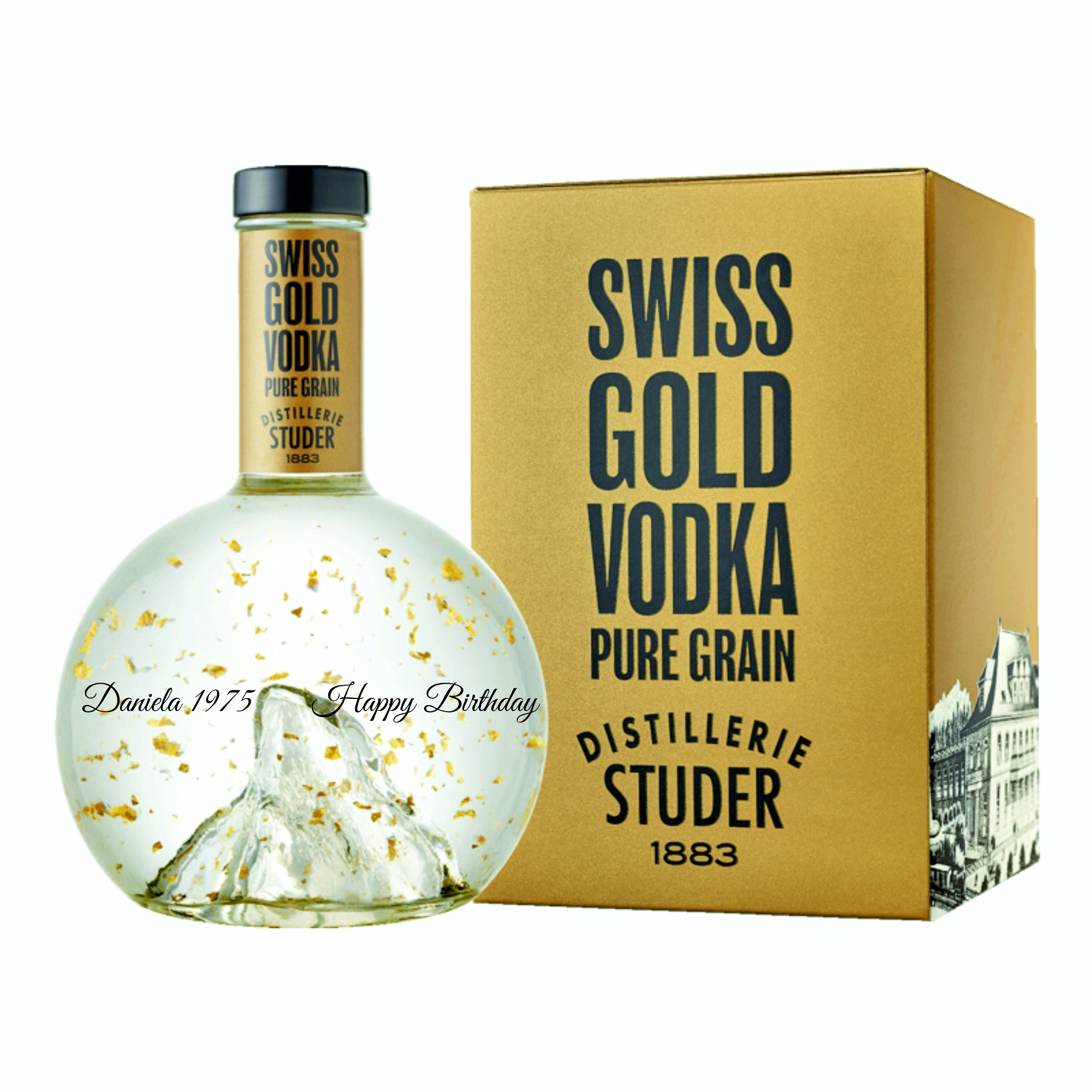 – Flasche Studer Swiss Gold VODKA mit echtem Goldflitter, 22 Karat, 70 cl